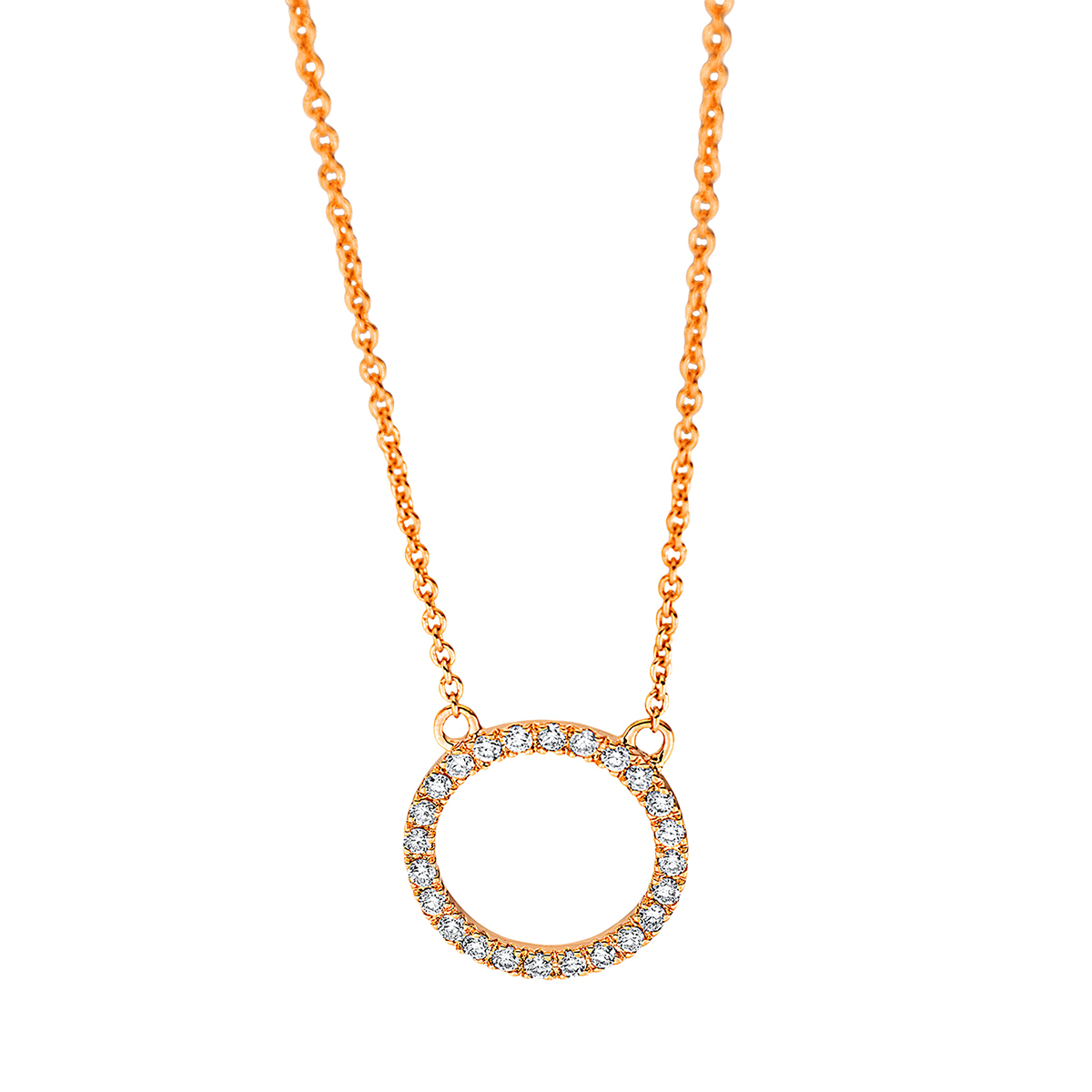 Collier 18 kt GG Kreis, mit ZÖ 42 cm, 24 Brillanten 0,11 ct, TW-si, L:45,0 cm, S:1,0 mm, Ø:10,5 mm
