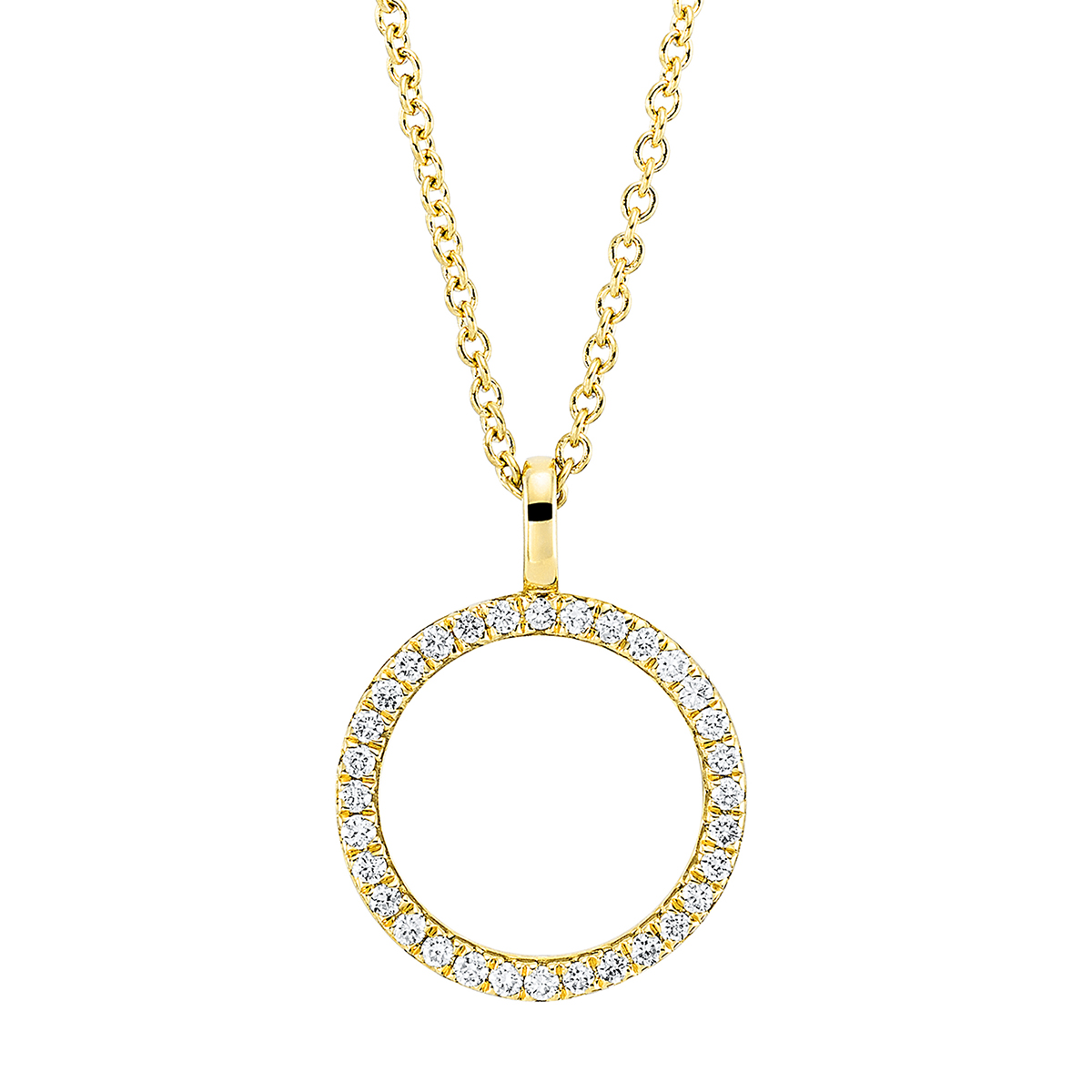 Collier 18 kt GG Kreis, mit ZÖ 42 cm, 32 Brillanten 0,16 ct, TW-si, H:17,2 mm, B:12,8 mm, L:45,0 cm, S:1,2 mm