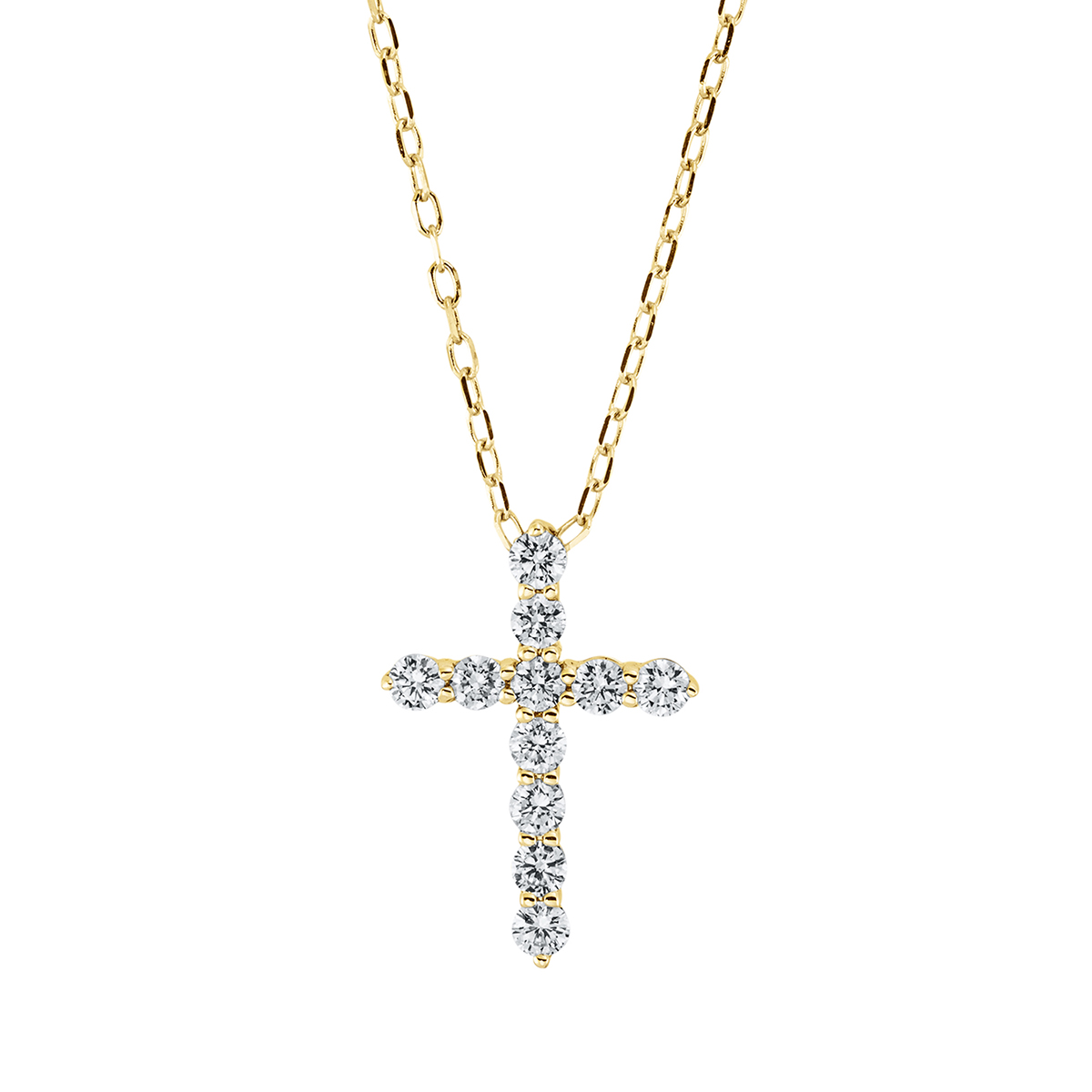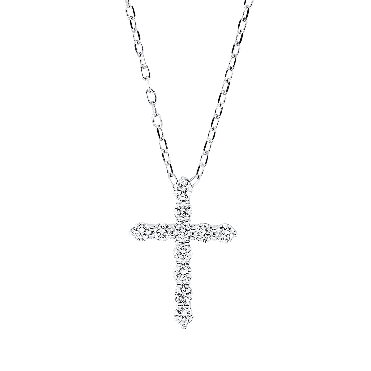 Collier 18 kt GG Kreuz, mit ZÖ 43 cm, 11 Brillanten 0,37 ct, TW-si, H:16,4 mm, B:11,7 mm, L:45,7 cm, S:2,7 mm