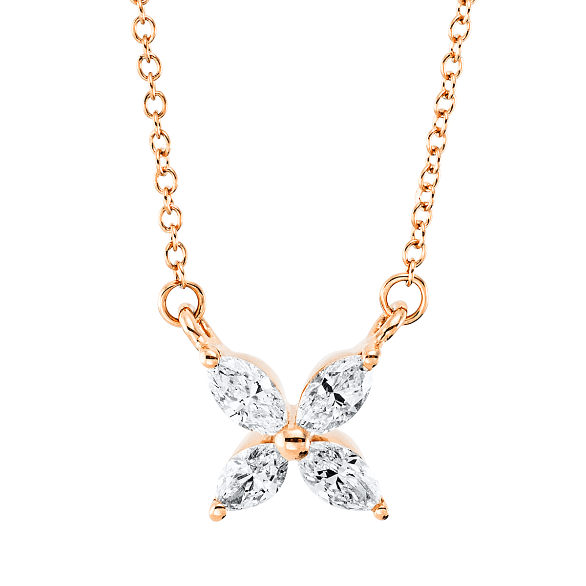 Collier 18 kt GG, mit ZÖ 40 cm, 4 Navette 0,24 ct, TW-vsi, L:45,7 cm