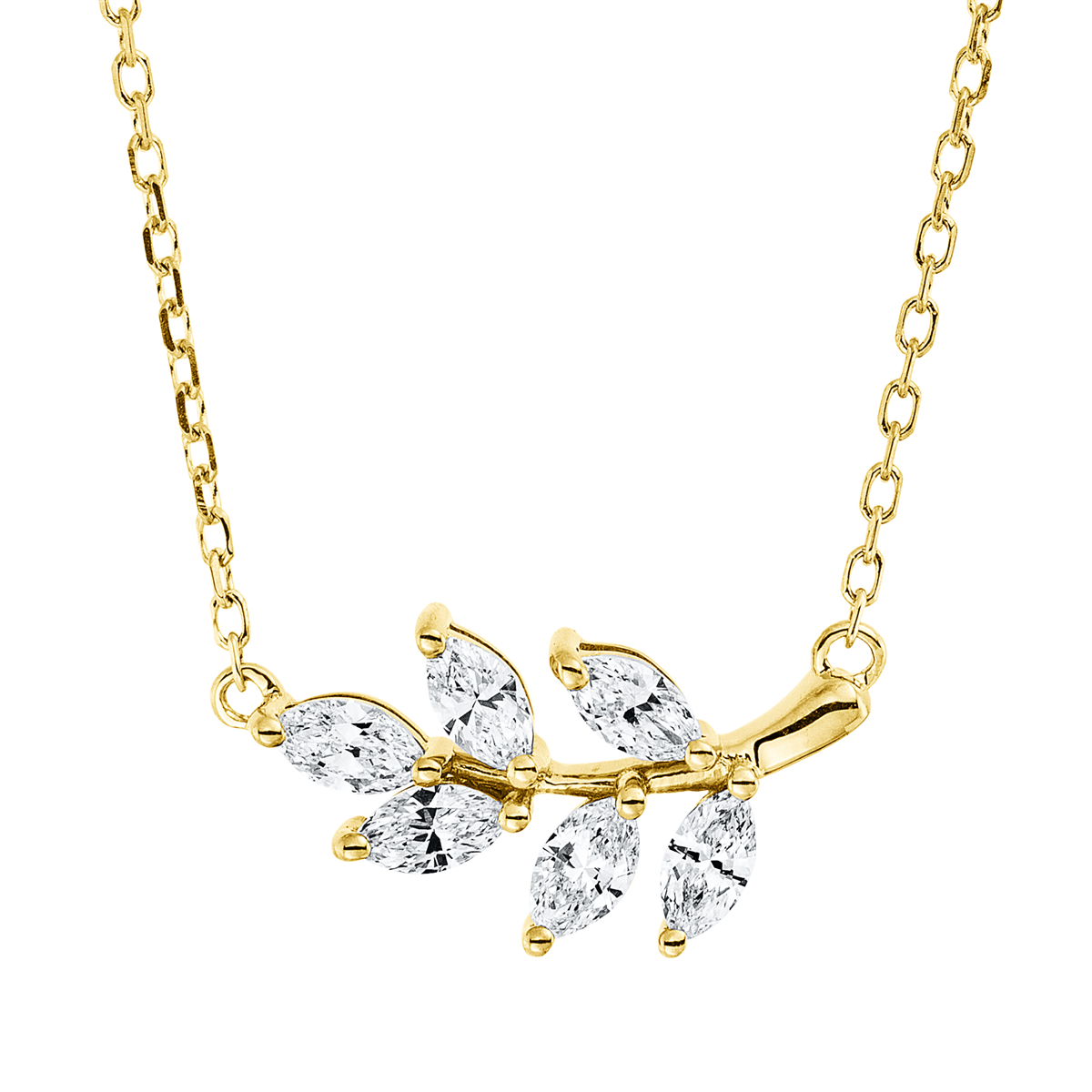 Collier 18 kt GG, mit ZÖ 40 cm, 6 Navette 0,35 ct, TW-vsi, H:7,4 mm, B:15,0 mm, L:45,7 cm, S:2,7 mm
