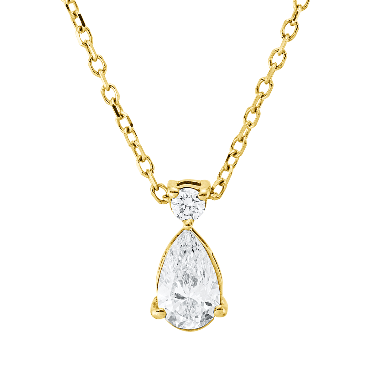 Collier 18 kt GG, mit ZÖ 40 cm + 42 cm, 1 Tropfen 0,30 ct, TW-si, 1 Brill. 0,04 ct, TW-si, L:45,0 cm