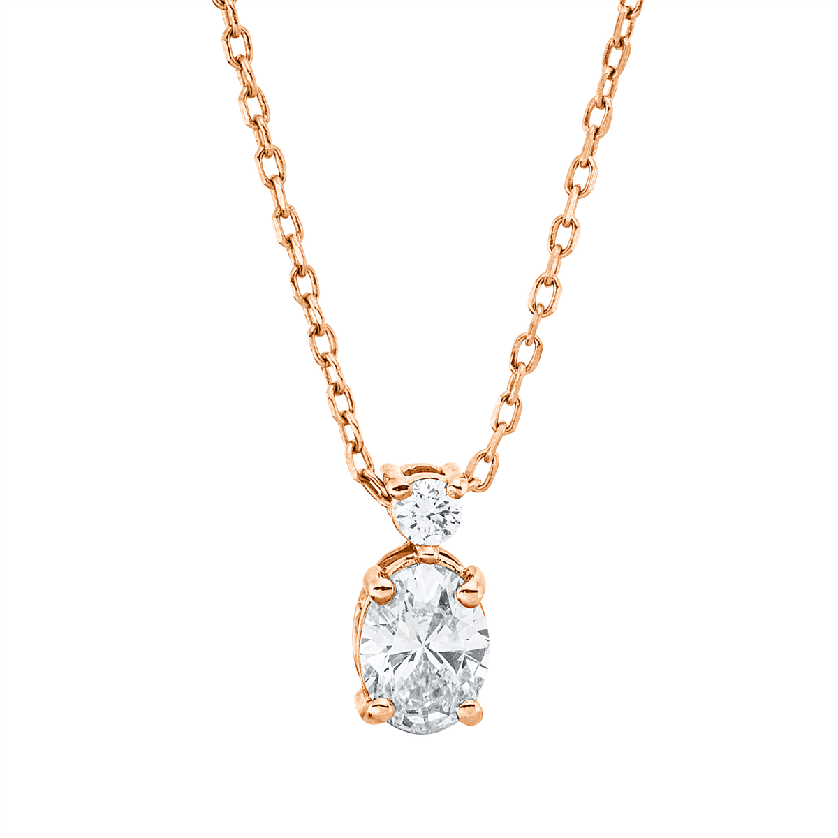 Collier 18 kt GG, mit ZÖ 40 cm + 42 cm, 1 Oval 0,30 ct, TW-si, 1 Brill. 0,04 ct, TW-si, H:7,6 mm, B:3,7 mm, L:45,0 cm, S:2,6 mm
