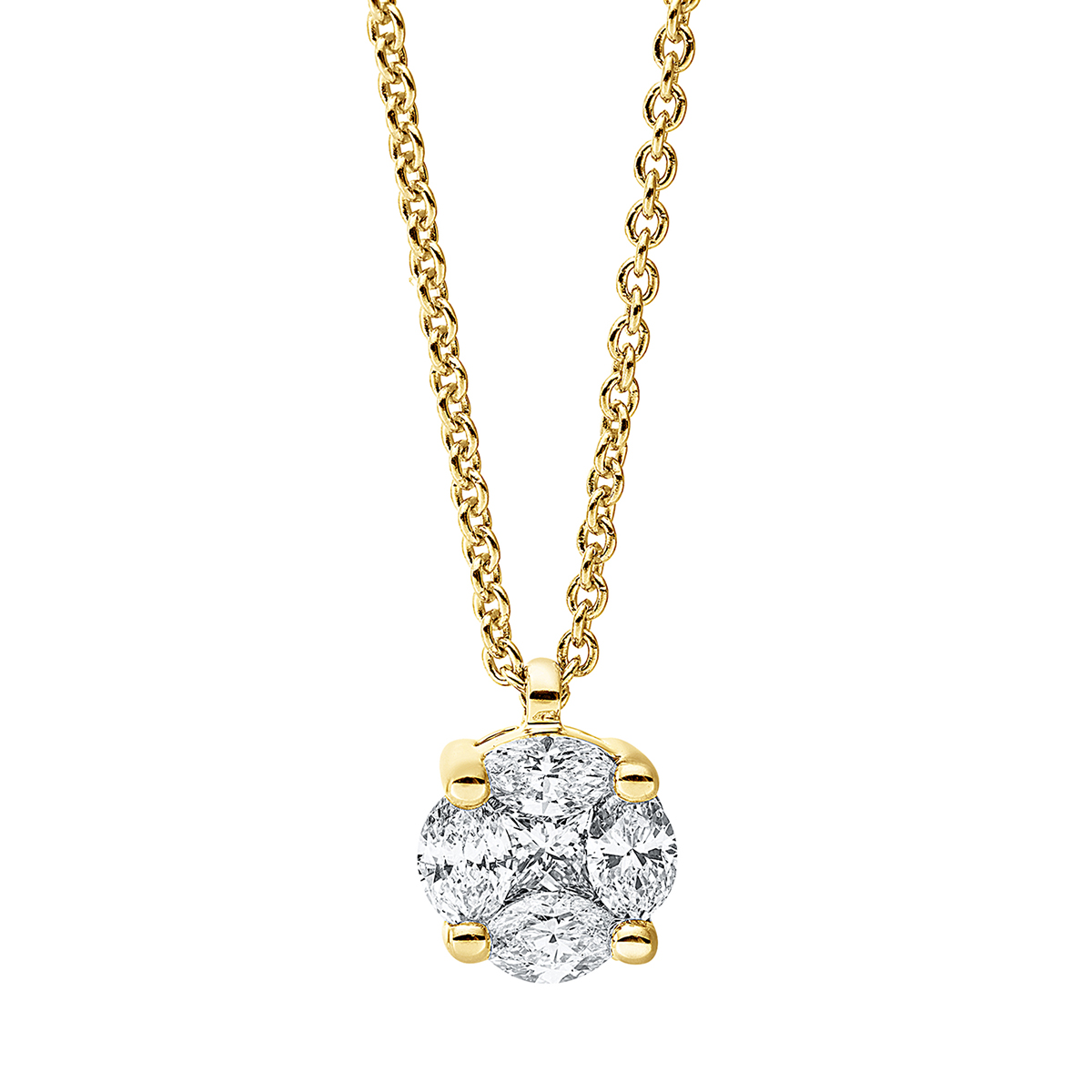 Collier 18 kt GG, mit ZÖ 42 cm, 1 Princ. 0,05 ct, TW-si, 4 Navette 0,18 ct, TW-si, L:45,0 cm
