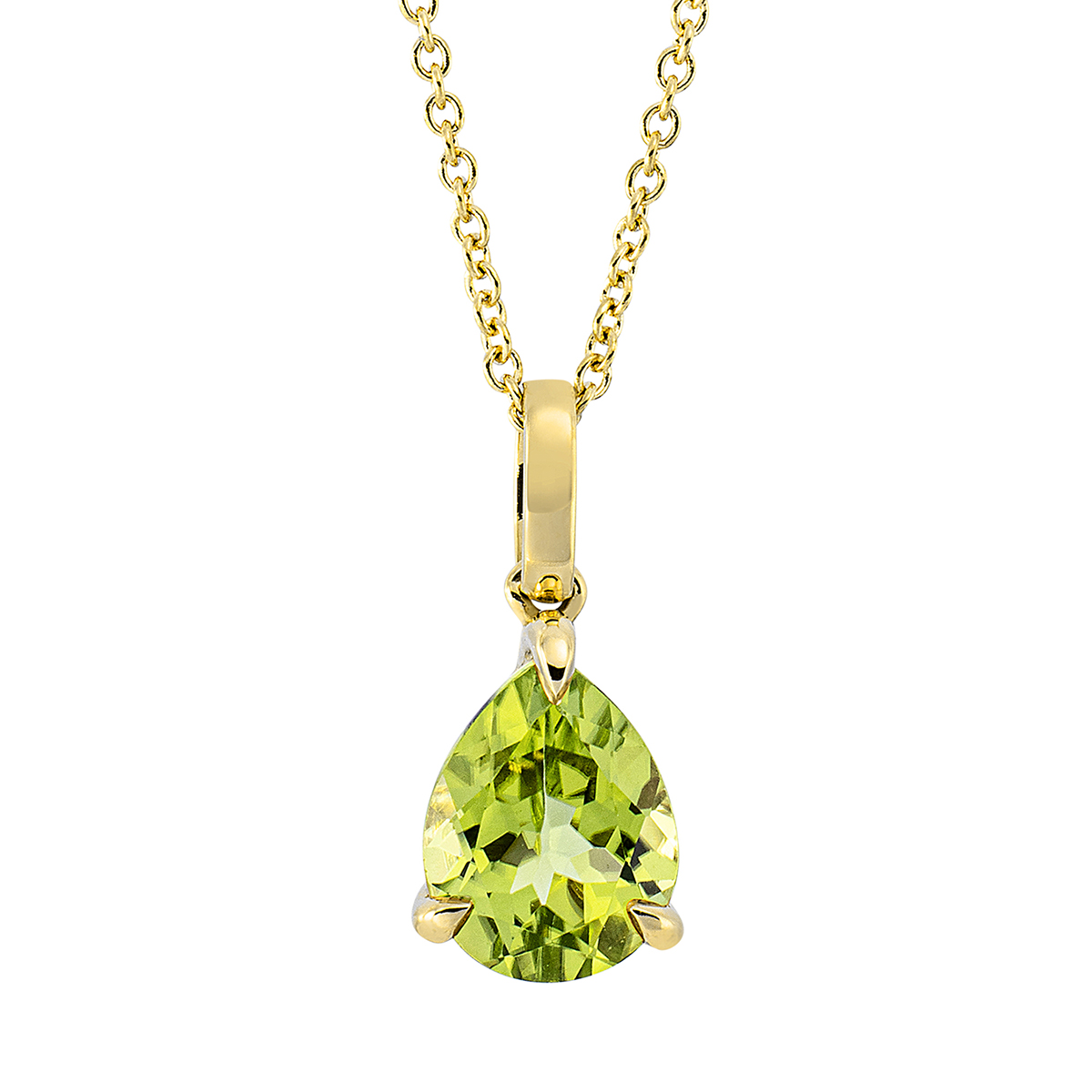 Collier 18 kt GG, mit ZÖ 42 cm, 1 Peridot 1,56 ct grün, L:45,0 cm