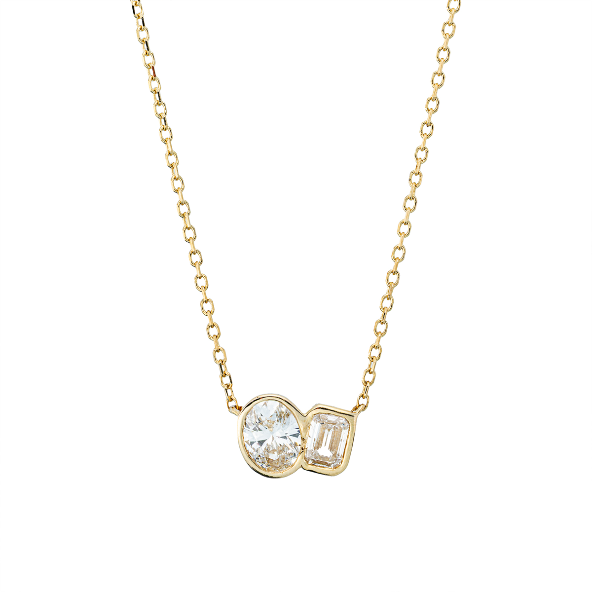 Collier 18 kt GG, mit ZÖ 43 cm + 40,6 cm, 1 Sm.schliff 0,20 ct, TW-si, 1 Oval 0,30 ct, TW-si, H:6,2 mm, B:8,5 mm, L:45,7 cm, S:2,5 mm