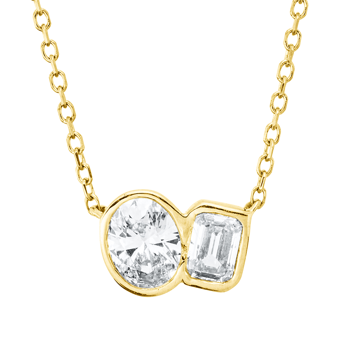 Collier 18 kt GG, mit ZÖ 43 cm + 40,6 cm, 1 Sm.schliff 0,20 ct, TW-si, 1 Oval 0,30 ct, TW-si, H:6,2 mm, B:8,5 mm, L:45,7 cm, S:2,5 mm