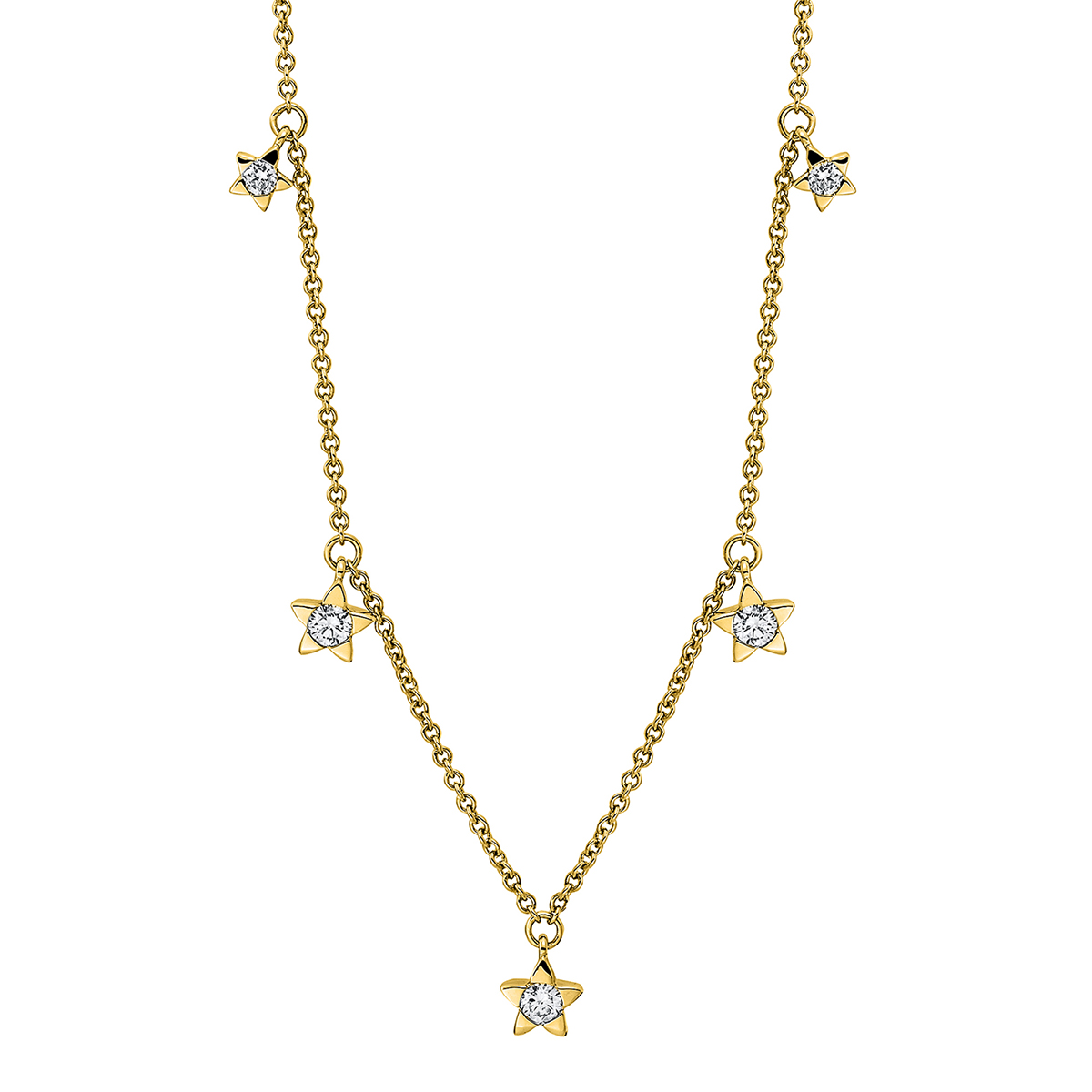 Collier 18 kt GG Stern, 3 Brillanten 0,15 ct, TW-si, 2 Brillanten 0,06 ct, TW-si, H:9,5 mm, B:6,4 mm, L:45,7 cm, S:1,6 mm