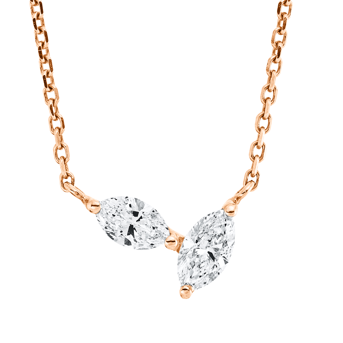 Collier 18 kt RG, 2 Navette 0,43 ct, TW-vsi, L:43,2 cm