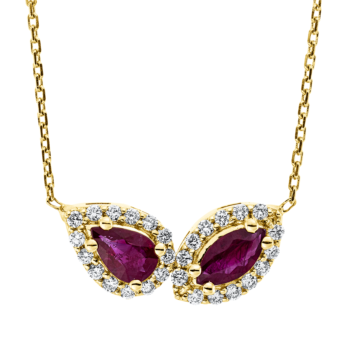 Collier 18 kt RG, 28 Brillanten 0,27 ct, F-vsi, 2 Rubine 1,05 ct rot, L:43,2 cm