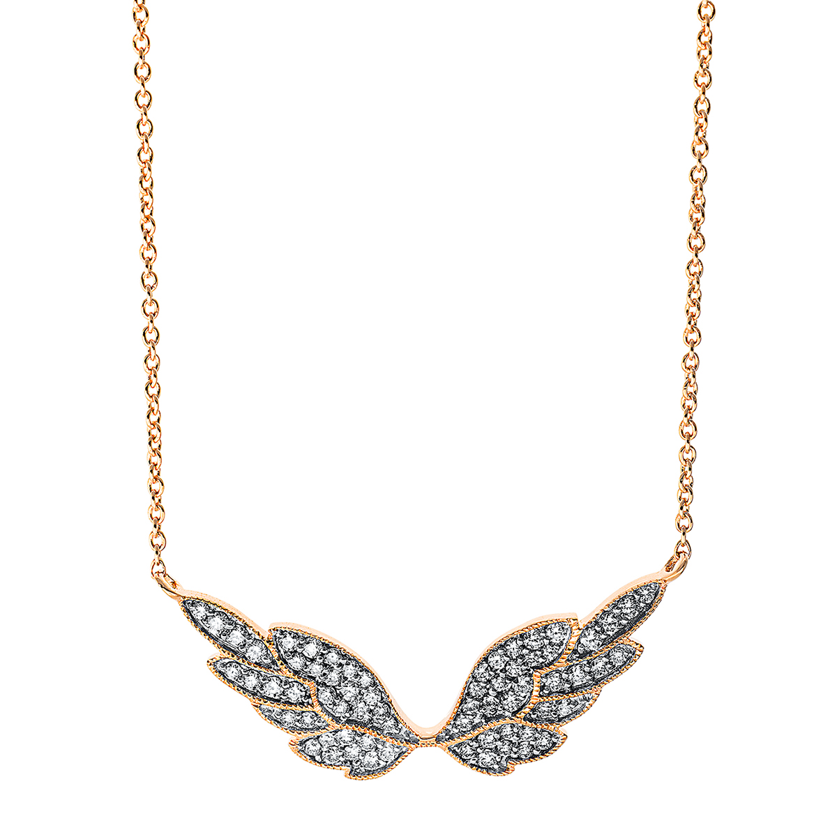 Collier 18 kt RG Flügel, 66 Brillanten 0,38 ct, TW-si, H:12,7 mm, B:27,2 mm, L:42,0 cm, S:1,4 mm