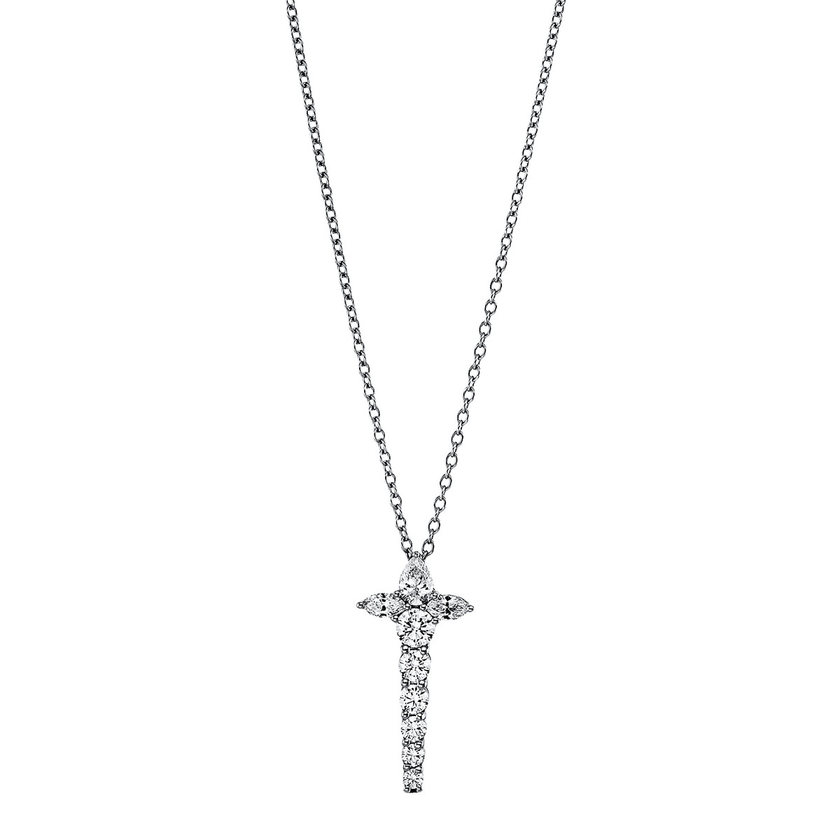 Collier 18 kt RG Kreuz, 9 Fant-Schl. 0,81 ct, TW-vsi/si, H:22,5 mm, B:11,0 mm, L:42,0 cm