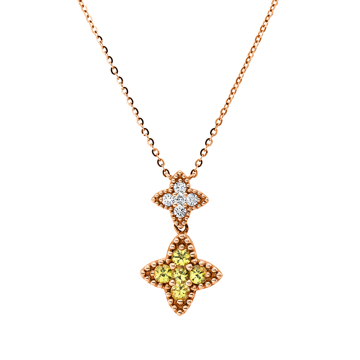 Collier 18 kt RG, mit ZÖ 42,43,44 cm, 5 Brillanten 0,08 ct, TW-si, 5 Saphire 0,35 ct gelb, H:17,6 mm, B:10,0 mm, L:45,0 cm, S:3,3 mm