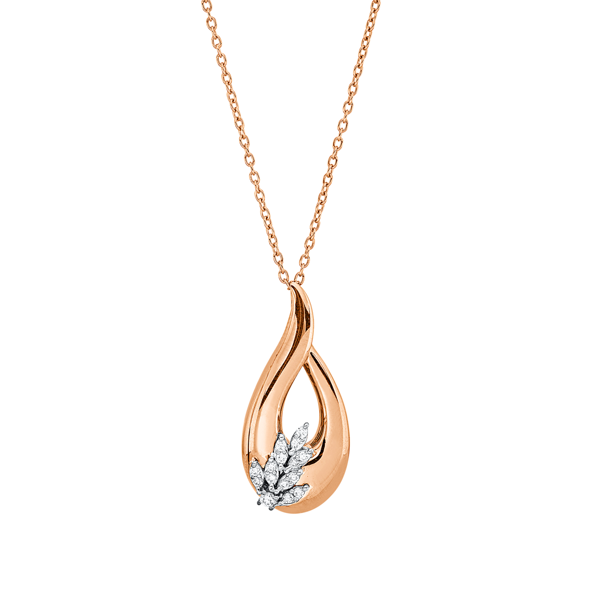 Collier 18 kt RG+WG, mit ZÖ 40,6 cm, 15 Brillanten 0,13 ct, F-vsi, H:26,0 mm, B:12,0 mm, L:45,7 cm, S:5,6 mm
