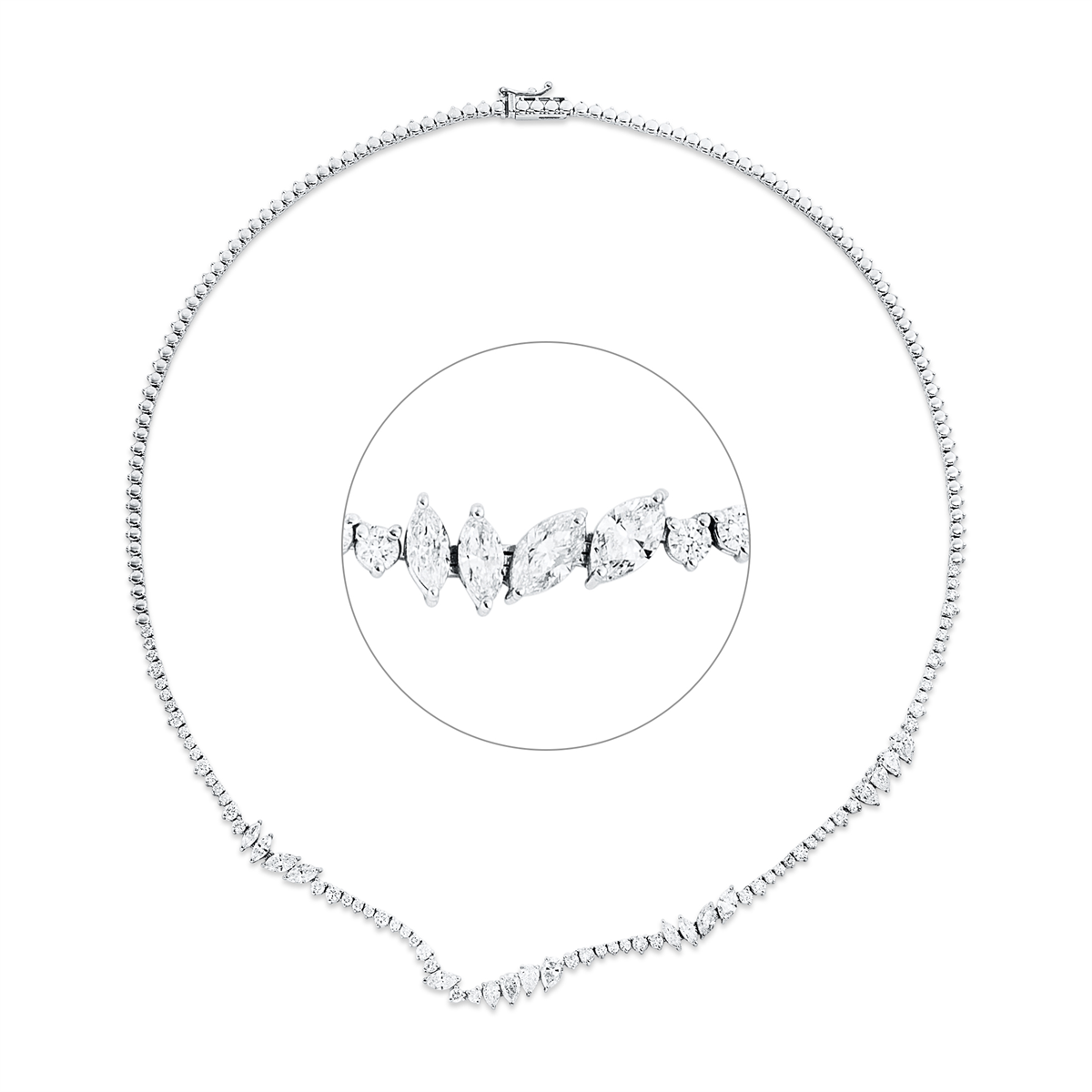Collier 18 kt WG, 9 Navette 1,27 ct, F-si, 8 Tropfen 1,42 ct, F-si, 61 Brillanten 1,85 ct, F-si, L:43,5 cm