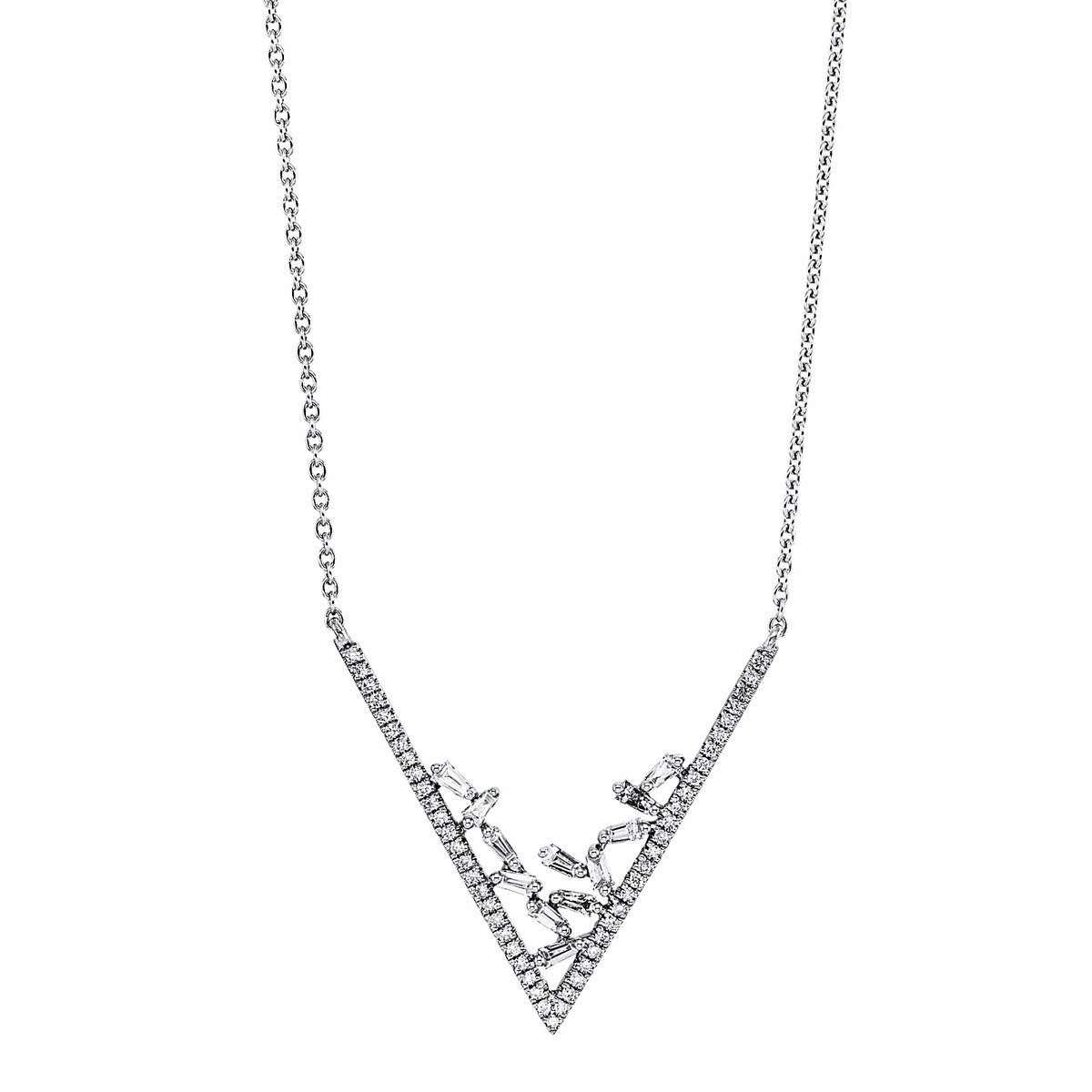 Collier 18 kt WG, 12 Trapeze 0,25 ct, TW-vsi/si, 51 Brillanten 0,13 ct, TW-vsi/si, L:42,0 cm