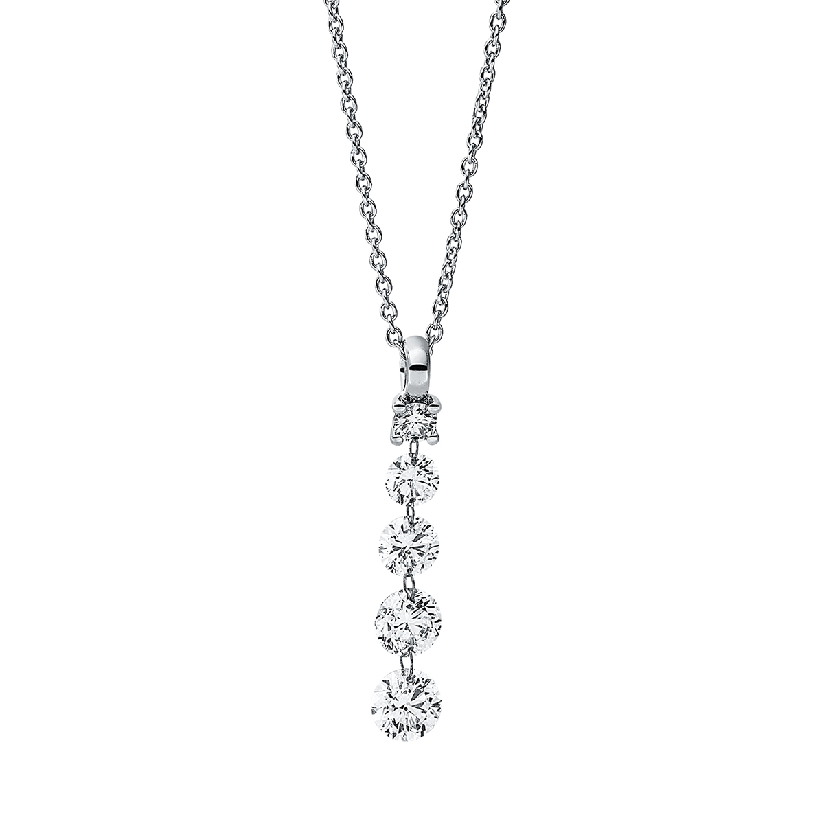 Collier 18 kt WG, 1 Brill. 0,11 ct, TW-si, 1 Brill. 0,16 ct, TW-si, 2 Brillanten 0,48 ct, TW-si, 1 Brill. 0,05 ct, TW-si, L:45,0 cm