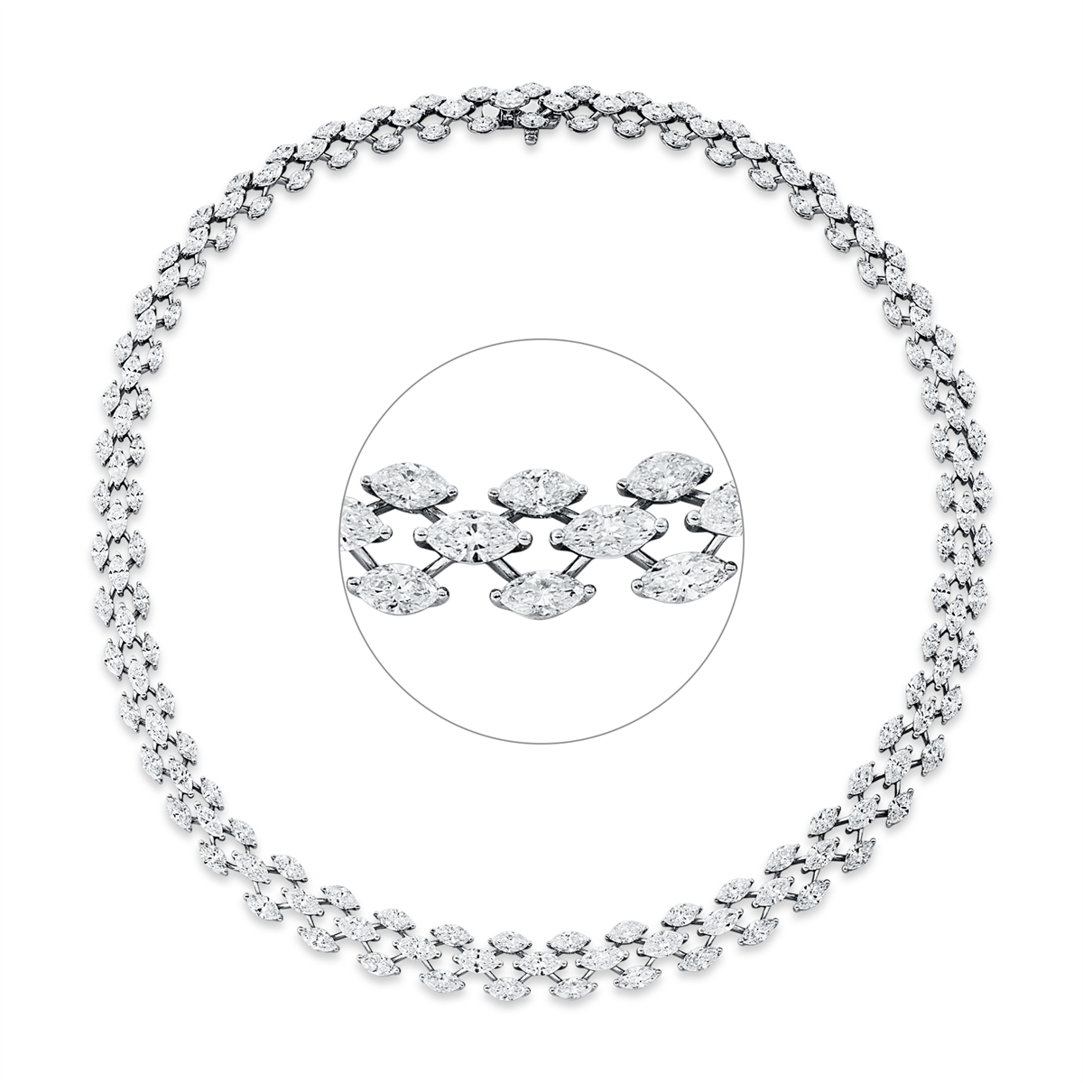 Collier 18 kt WG, 38 Navette 5,61 ct, F-vsi, 51 Navette 10,15 ct, F-vsi, 27 Navette 6,73 ct, F-vsi, 13 Navette 4,21 ct, F-vsi, 24 Navette 2,22 ct, F-vsi, L:42,0 cm