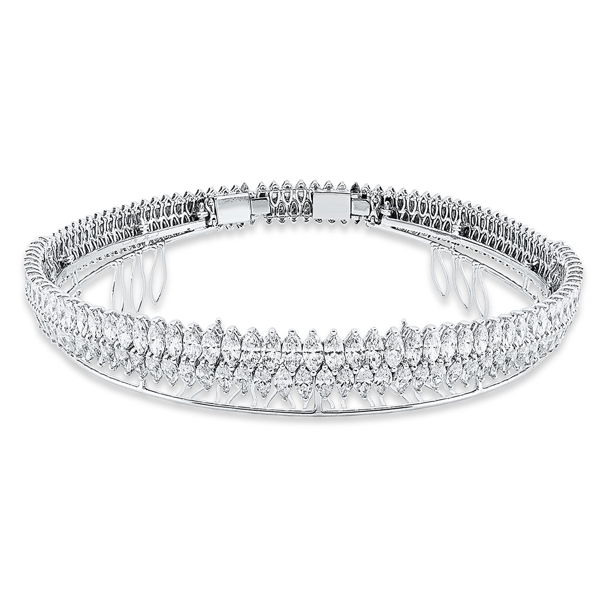 Collier 18 kt WG, 114 Navette 37,19 ct, TW-vsi, B:18,2 mm, L:38,0 cm