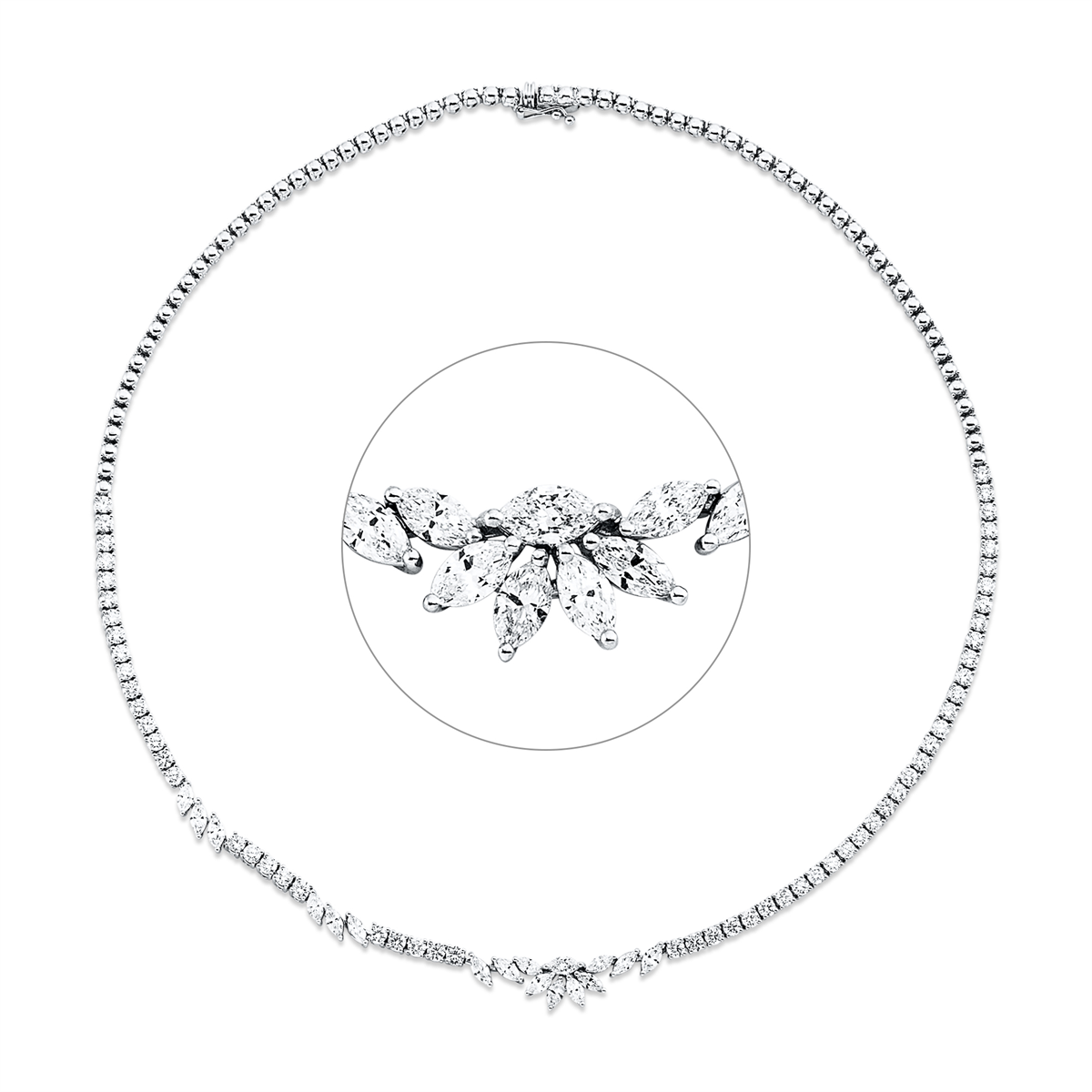 Collier 18 kt WG, 17 Navette 1,72 ct, F-si, 59 Brillanten 4,32 ct, F-si, B:7,7 mm, L:42,0 cm, S:4,0 mm