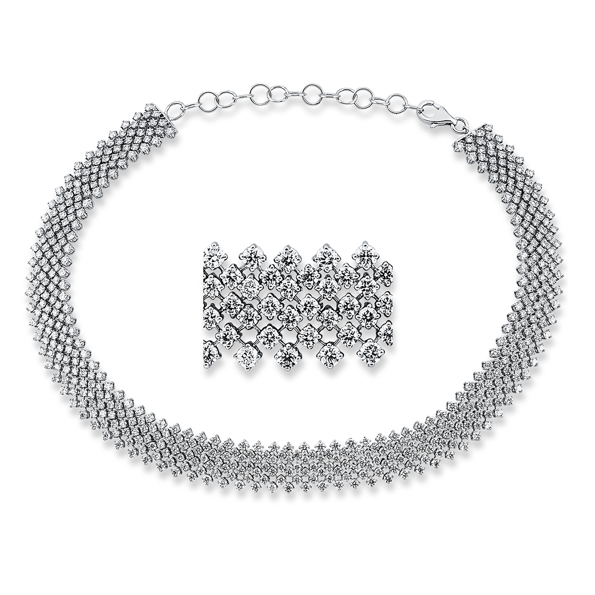 Collier 18 kt WG Choker, 27 cm, adjustable, 515 Brillanten 14,04 ct, TW-si