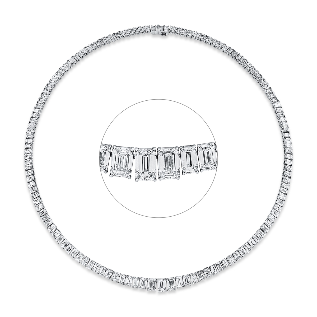 Collier 18 kt WG, GIA6485783438, 11 Sm.schliff 4,92 ct, F-vvs/vs, 127 Sm.schliff 21,67 ct, F-vvs/vs, L:40,6 cm