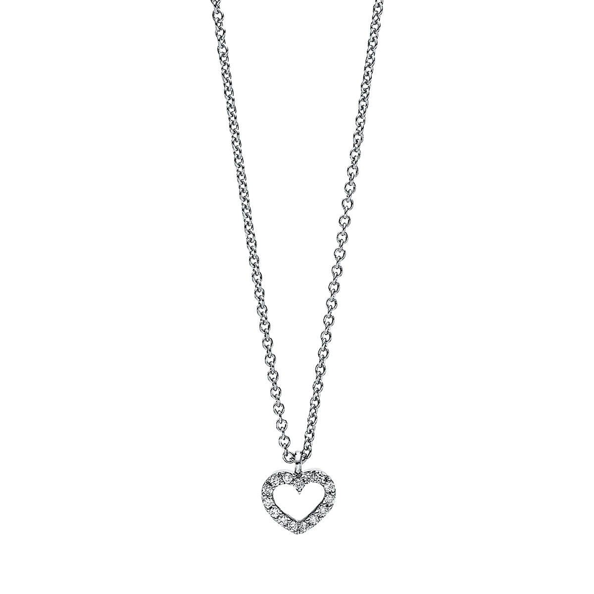 Collier 18 kt WG Herz, mit Öse, 15 Brillanten 0,04 ct, TW-si, H:6,7 mm, B:6,1 mm, L:42,0 cm, S:2,0 mm