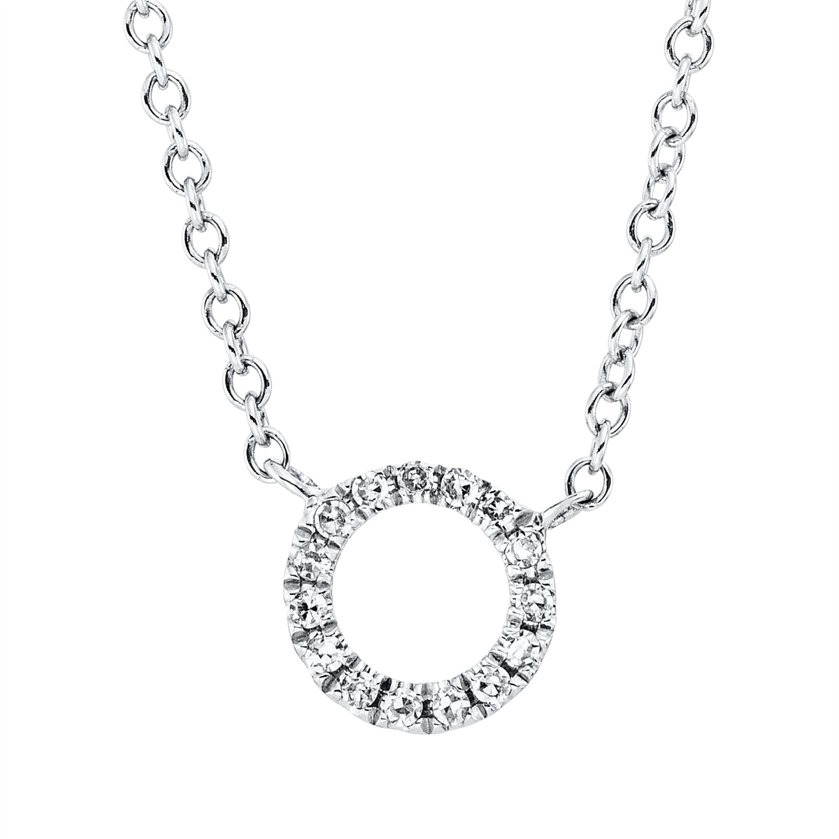 Collier 18 kt WG Kreis, mit ZÖ 43 cm + 40,6 cm, 15 Diamanten 0,04 ct, TW-si, L:45,7 cm