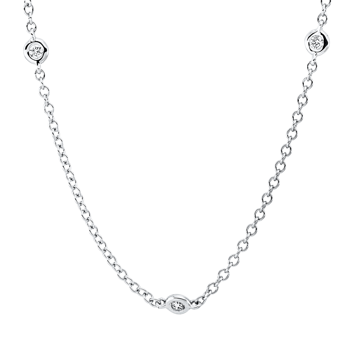 Collier 18 kt WG, mit Öse, 1 Brill. 0,08 ct, TW-si, 4 Rubine 1,75 ct rot, 1 Rubin 0,13 ct rot, L:42,0 cm