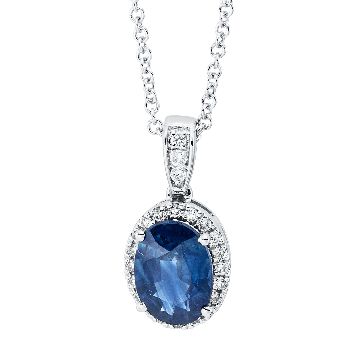 Collier 18 kt WG, mit Öse, 22 Brillanten 0,07 ct, TW-si, 1 Saphir 1,00 ct blau, H:13,4 mm, B:6,7 mm, L:45,0 cm, S:4,2 mm