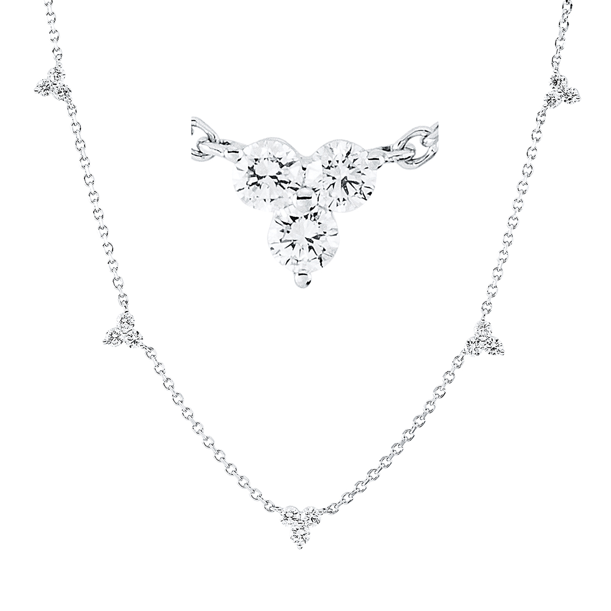 Collier 18 kt WG, mit ZÖ 35,5 cm + 38 + 40,6cm, 15 Brillanten 0,64 ct, TW-si, L:43,2 cm