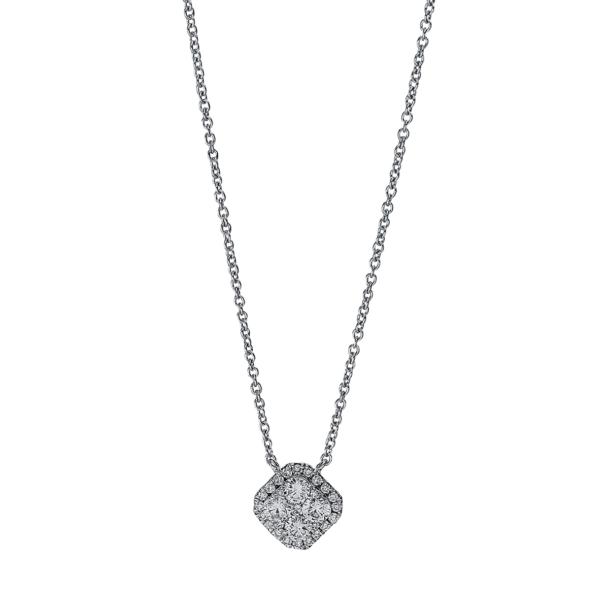 Collier 18 kt WG, mit ZÖ 40 cm, 4 Brillanten 0,33 ct, TW-si, 1 Brill. 0,01 ct, TW-si, 24 Brillanten 0,11 ct, TW-si, L:45,7 cm