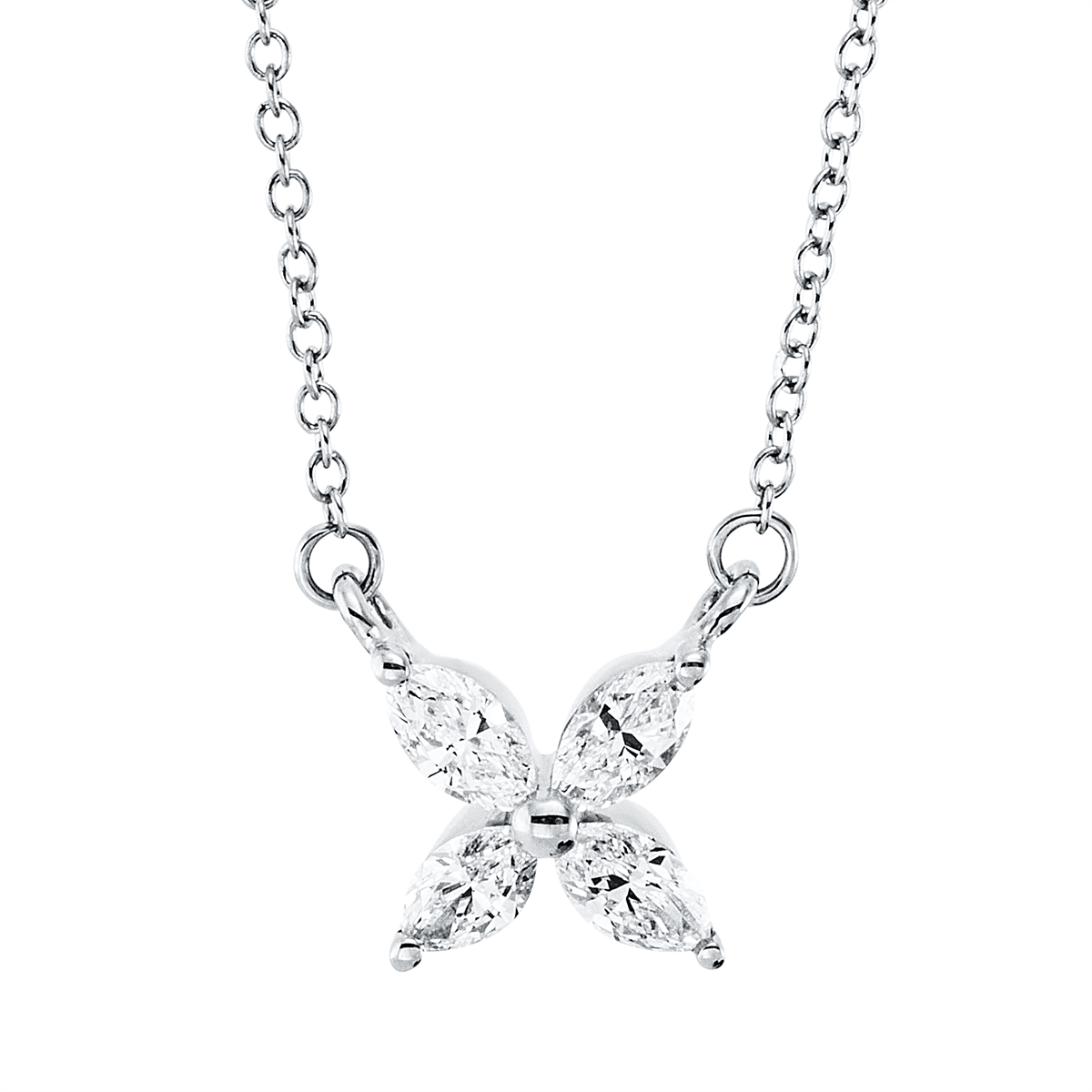 Collier 18 kt WG, mit ZÖ 40 cm, 4 Navette 0,24 ct, TW-vsi, L:45,7 cm