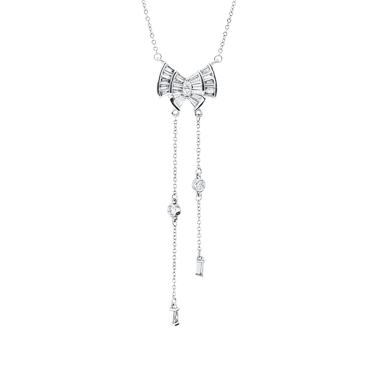 Collier 18 kt WG, mit ZÖ 40 cm, 24 Trapeze 0,50 ct, TW-vsi, 8 Brillanten 0,24 ct, TW-si, L:45,7 cm
