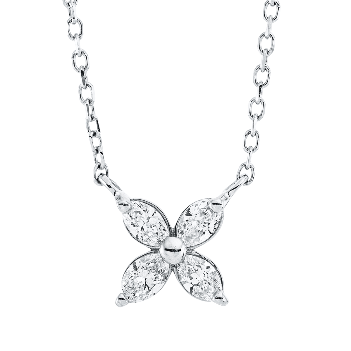 Collier 18 kt WG, mit ZÖ 40 cm + 42 cm, 4 Navette 0,20 ct, TW-si, L:45,0 cm