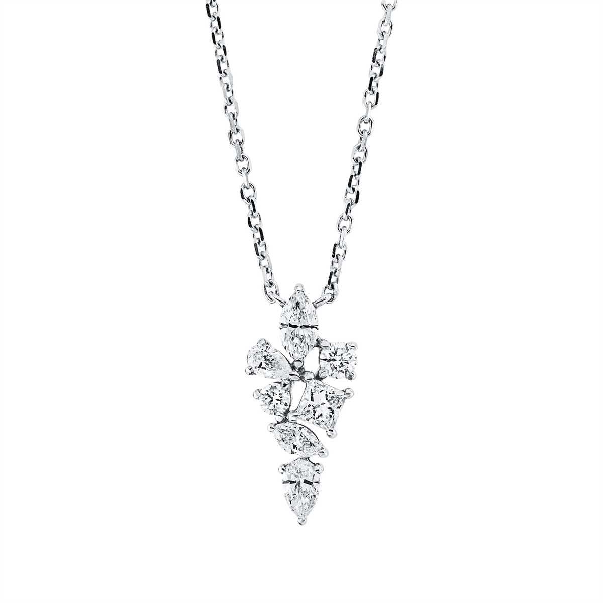 Collier 18 kt WG, mit ZÖ 40 cm + 43 cm, 2 Navette 0,16 ct, TW-si, 1 Princ. 0,09 ct, TW-si, 2 Tropfen 0,13 ct, TW-si, 2 Brillanten 0,08 ct, TW-si, L:45,0 cm