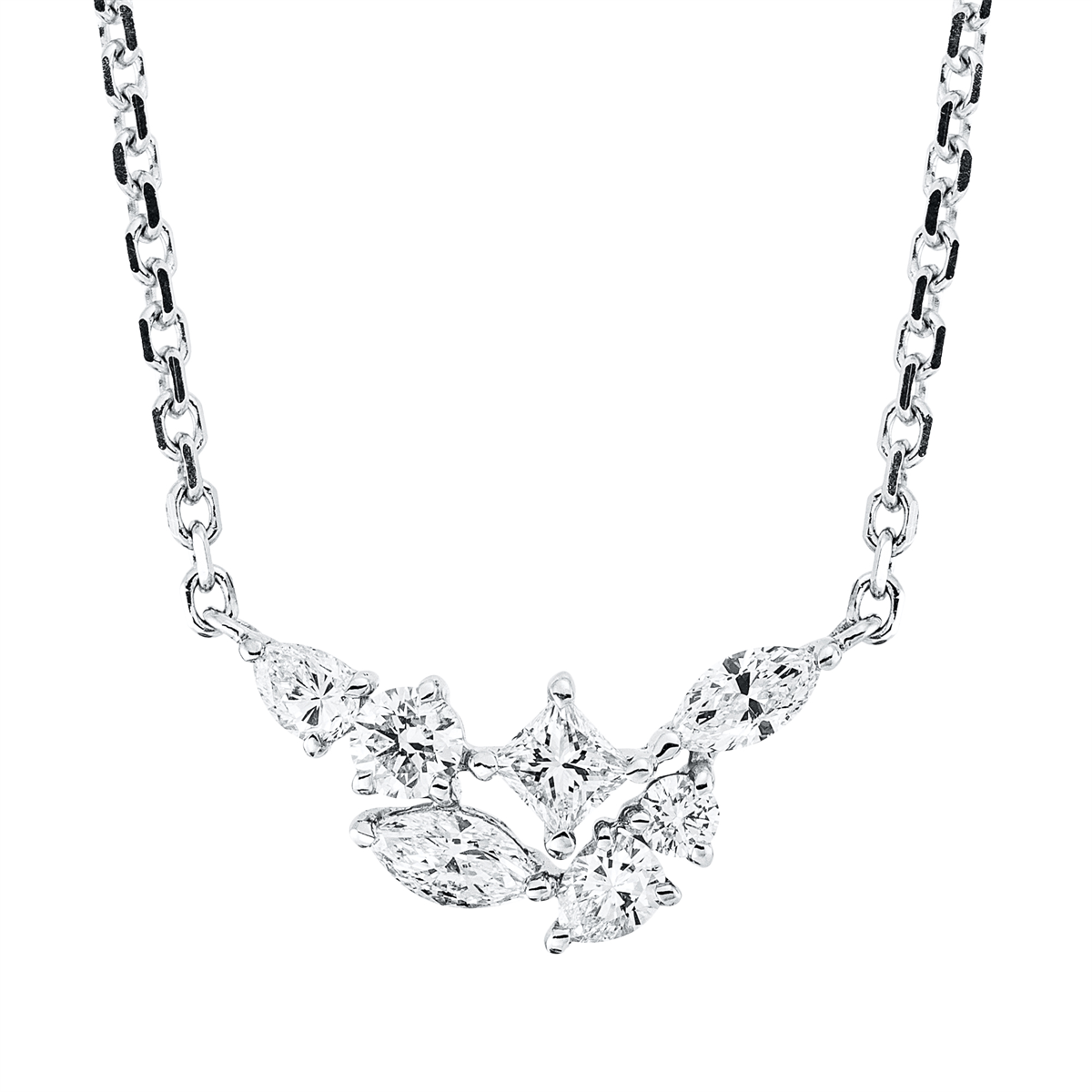 Collier 18 kt WG, mit ZÖ 40 cm + 43 cm, 2 Navette 0,17 ct, TW-si, 1 Princ. 0,09 ct, TW-si, 2 Tropfen 0,12 ct, TW-si, 2 Brillanten 0,11 ct, TW-si, L:45,0 cm