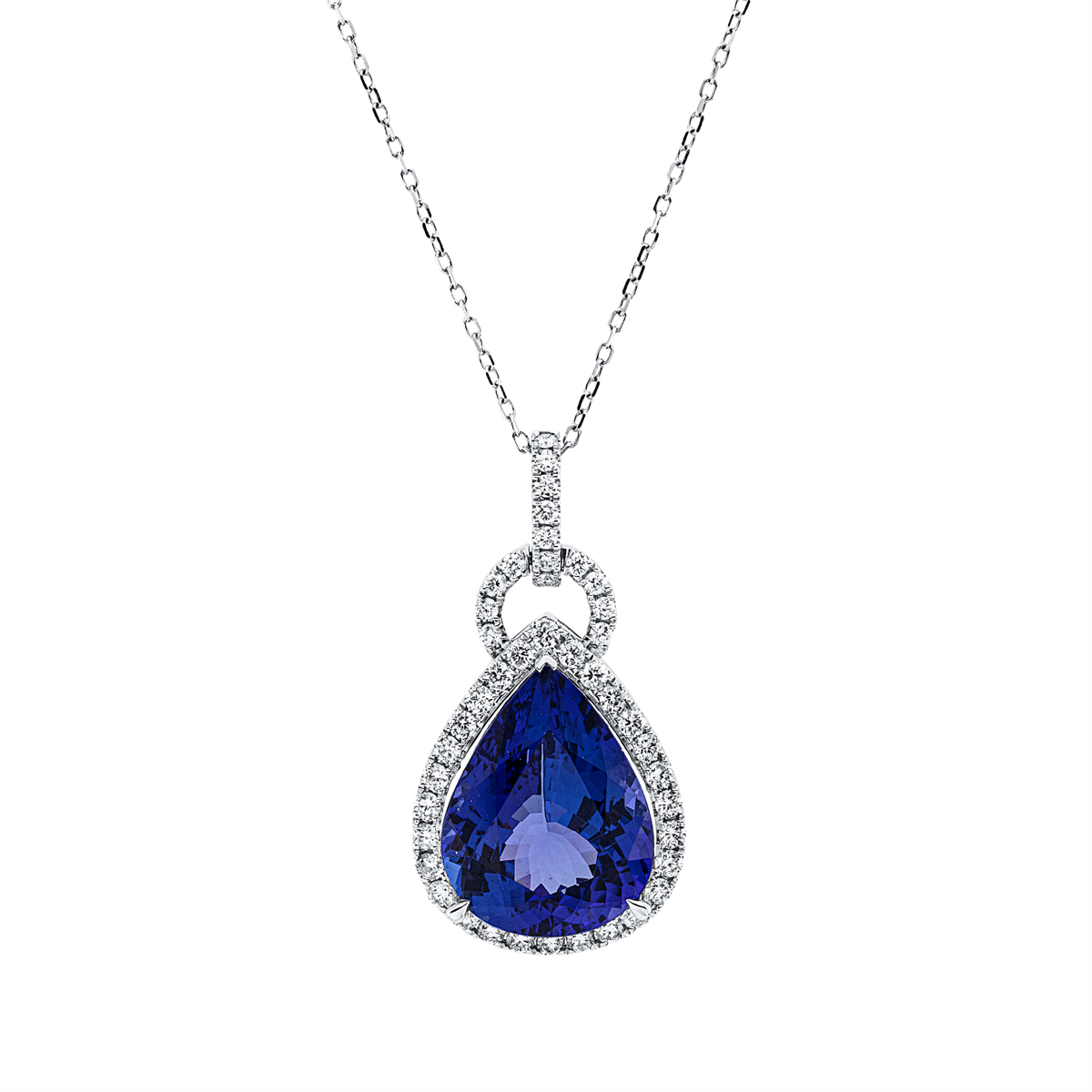 Collier 18 kt WG, mit ZÖ 40,6 cm, 43 Brillanten 0,66 ct, TW-vsi, 1 Tansanit 8,41 ct blau, L:45,7 cm