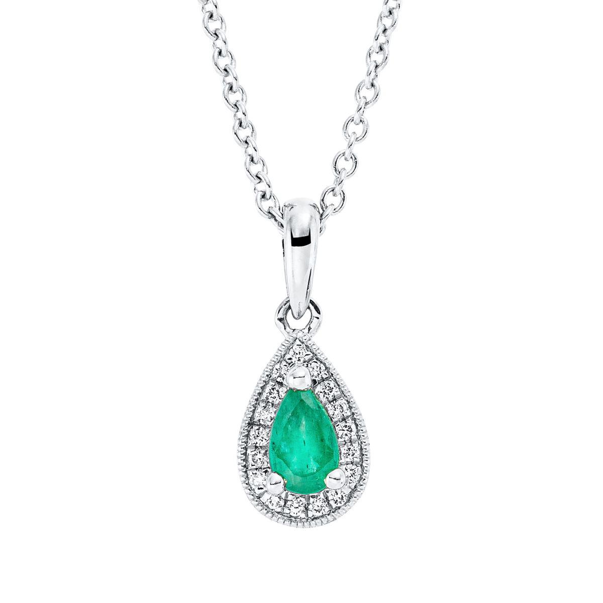 Collier 18 kt WG, mit ZÖ 42 cm, 17 Brillanten 0,04 ct, TW-si, 1 Smaragd 0,22 ct grün, L:45,0 cm