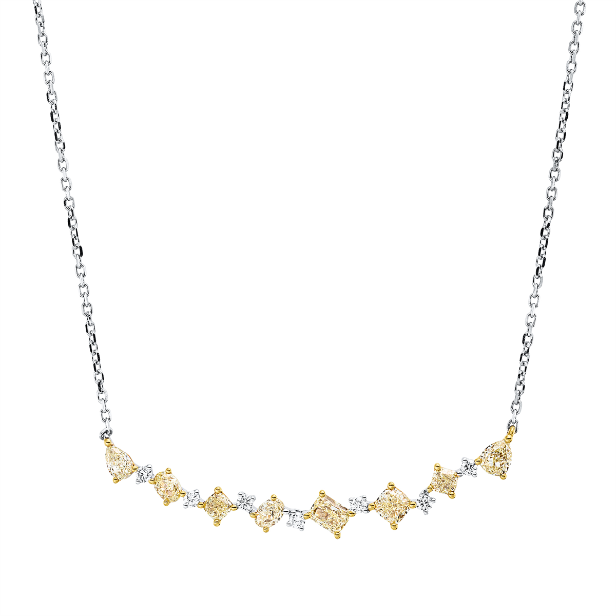 Collier 18 kt WG+GG, 7 Brillanten 0,10 ct, TW-si, 5 Fant-Schl. 0,60 ct, gelb, 1 Radiant 0,17 ct, gelb, 2 Oval 0,17 ct, gelb, H:28,1 mm, B:11,9 mm, L:43,2 cm, S:2,6 mm