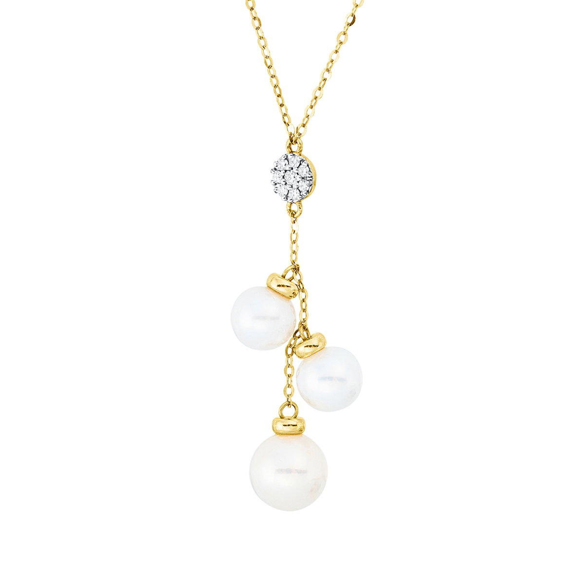 Collier 18 kt GG, Fass rhod,ZÖ 38 cm, 8 Brillanten 0,08 ct, TW-si, 2 ZP weiß 6 mm, 1 ZP weiß 5 mm, 1 ZP weiß 7 mm, H:34,0 mm, B:9,0 mm, L:44,0 cm, S:7,4 mm