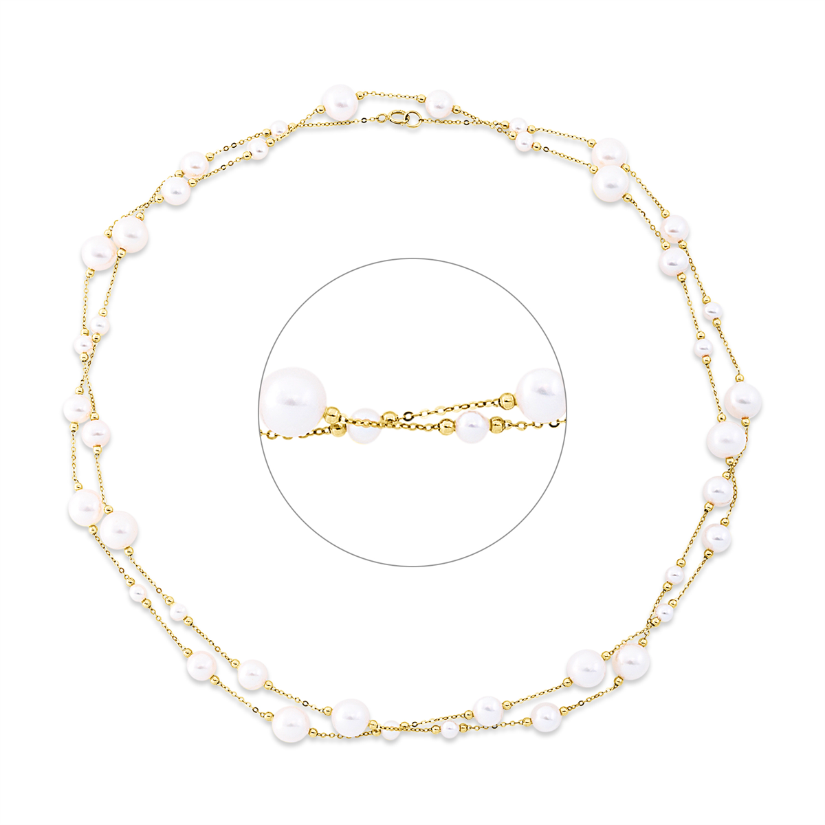 Collier 18 kt GG, 13 ZP weiß 6 mm, 13 ZP weiß 8 mm, 14 ZP weiß 4,5 mm, L:90,0 cm