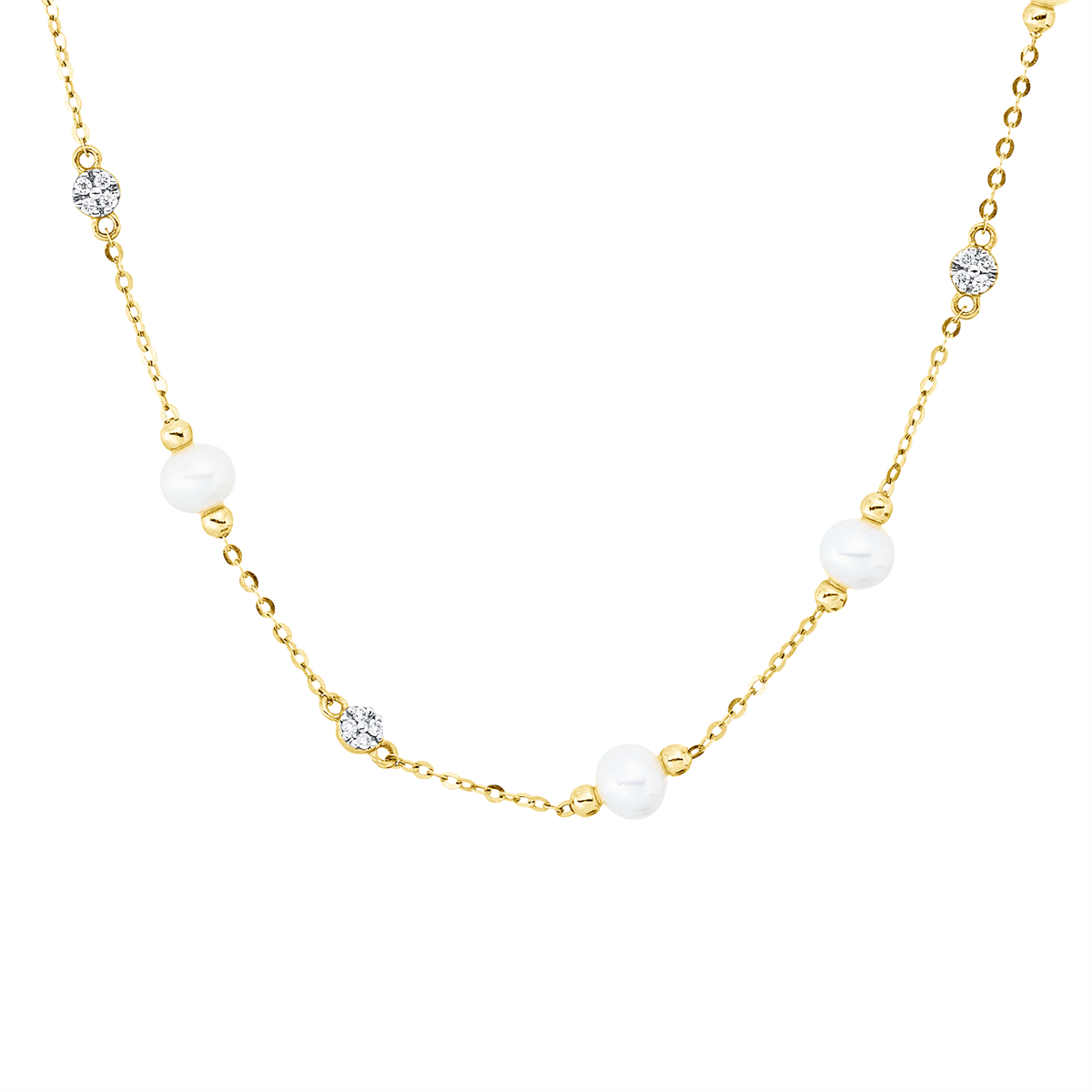 Collier 18kt Gelbgold mit ZÖ 38 cm, Fassung rhod. mit 0,07ct Diamanten