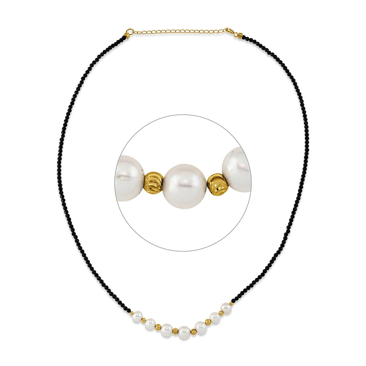 Collier 18 kt GG, mit ZÖ 40 cm, 164 Spinel 24,60 ct schwarz, 2 SW weiß 5 mm, 2 SW weiß 5,5 mm, 3 SW weiß 6 mm, L:45,0 cm