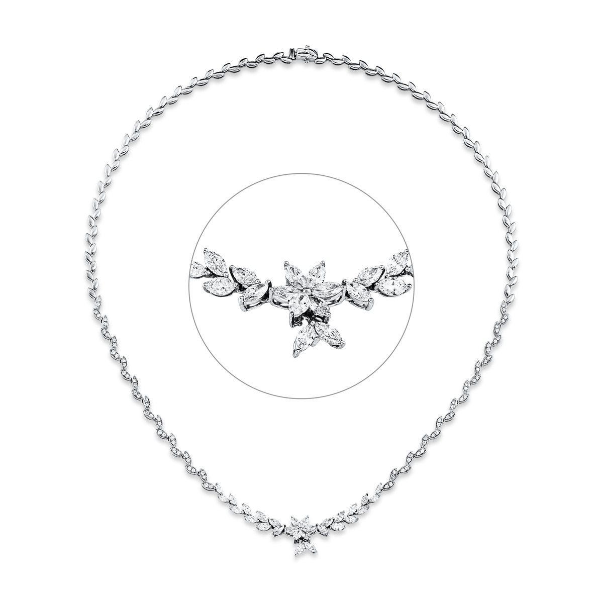 Collier 18 kt WG, 28 Navette 2,01 ct, TW-vsi/si, 80 Brillanten 0,64 ct, TW-vsi/si, L:44,0 cm