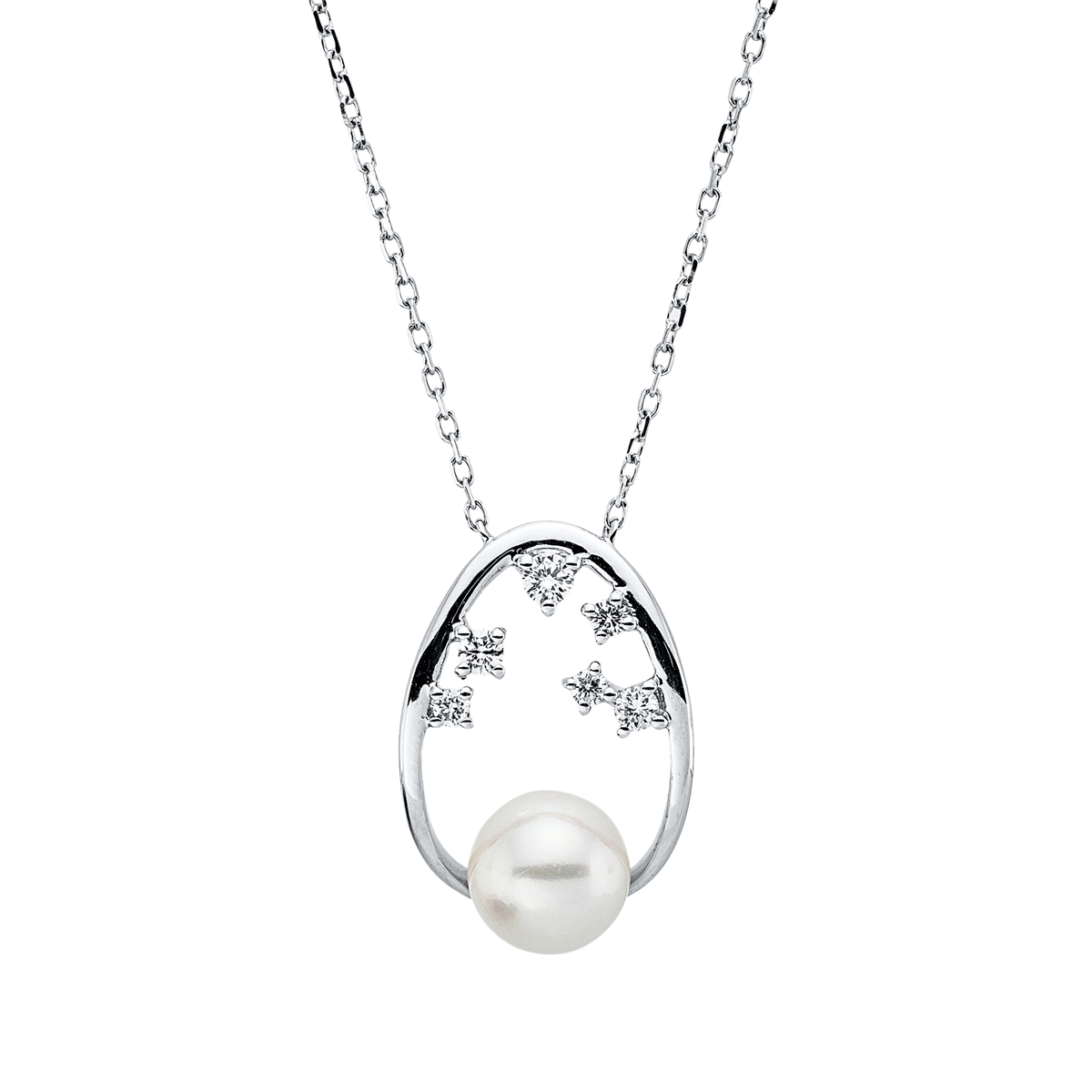 Collier 18 kt WG, mit ZÖ 40 cm, 6 Brillanten 0,13 ct, TW-si, 1 SW weiß 6,5 mm, L:45,7 cm