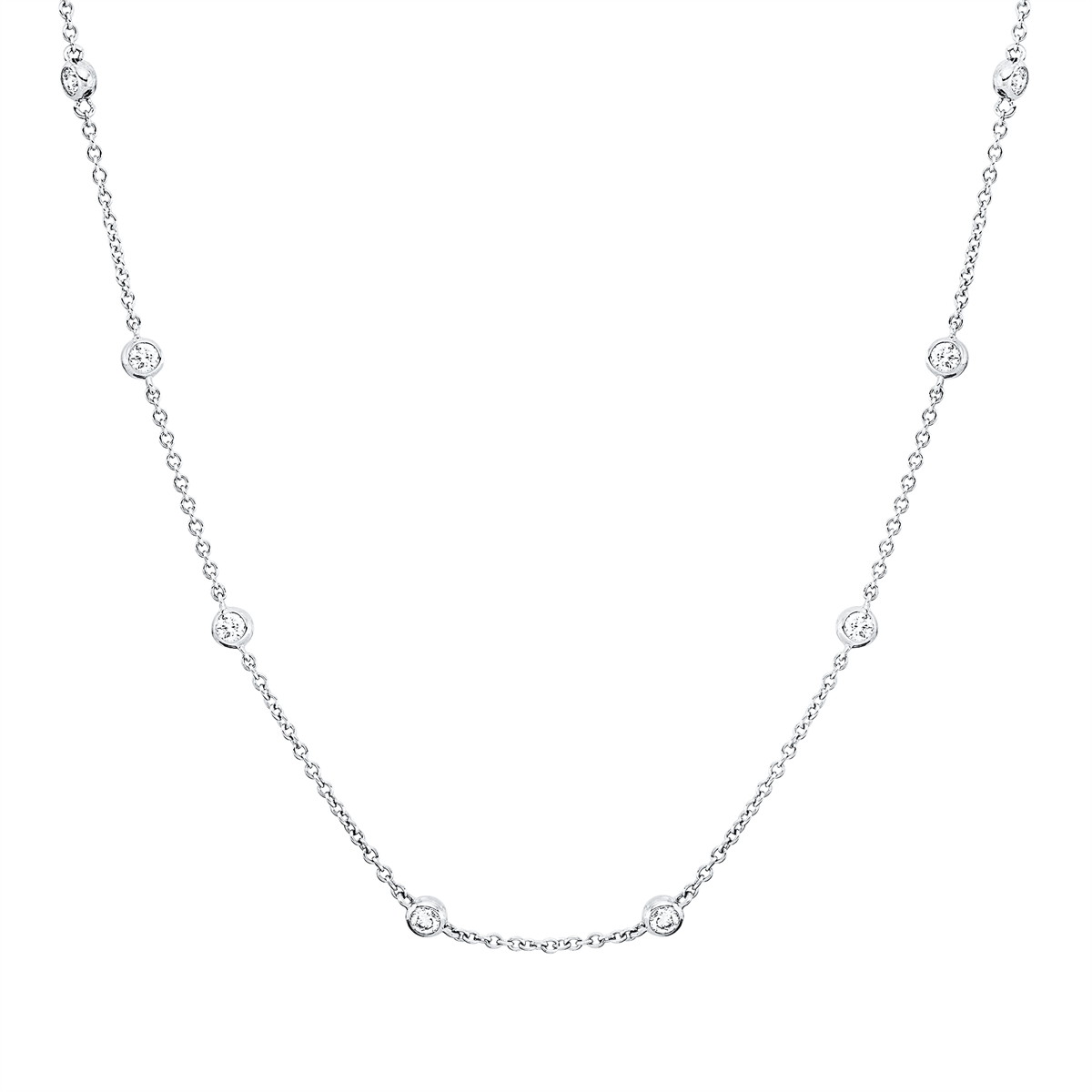 Collier Zarge 18 kt WG, mit ZÖ 40,6 cm, 18 Brillanten 0,68 ct, F-vsi/si, L:43,2 cm
