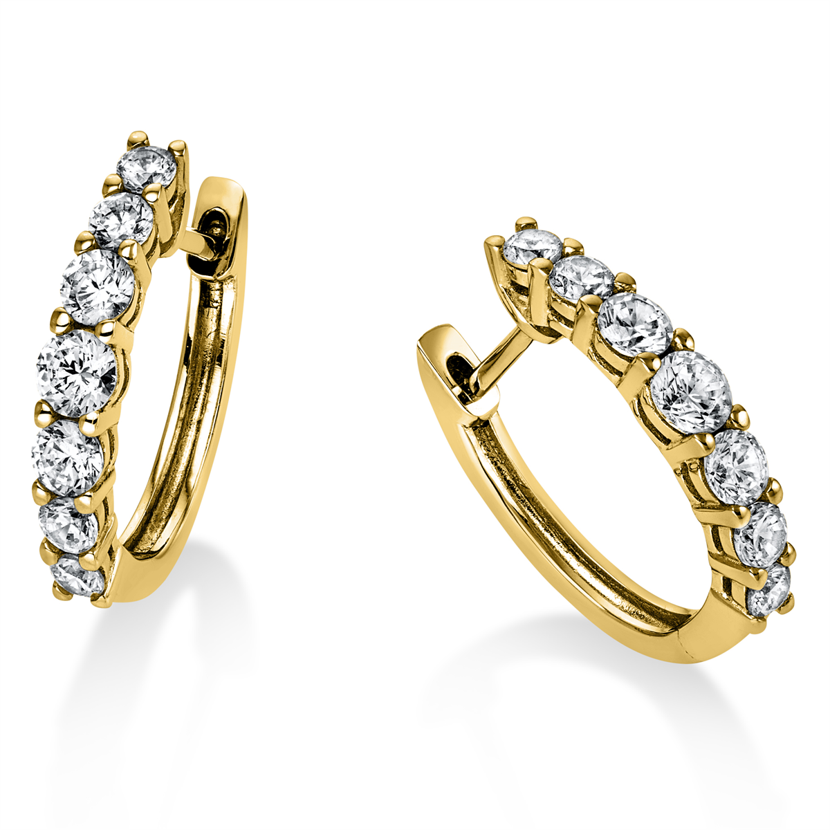Creolen 14 kt GG, 6 Brillanten 0,59 ct, TW-si, 4 Brillanten 0,23 ct, TW-si, 4 Brillanten 0,18 ct, TW-si, H:17,0 mm, B:14,4 mm, S:3,0 mm