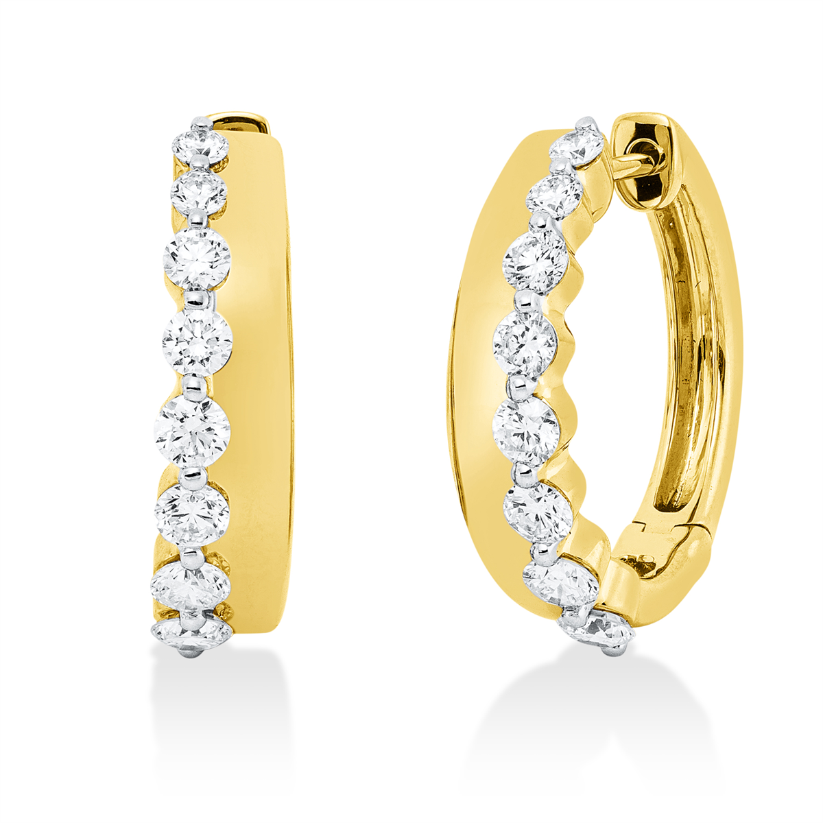 Creolen 14 kt GG+WG, 12 Brillanten 0,80 ct, TW-si, 4 Brillanten 0,14 ct, TW-si, H:18,6 mm, B:19,5 mm, S:4,8 mm