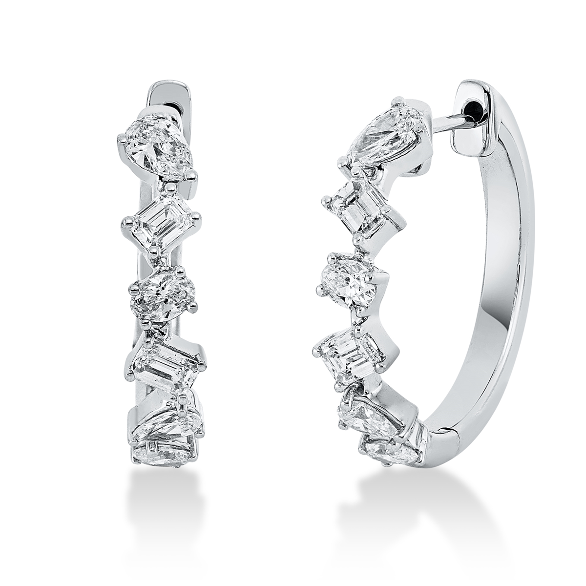 Creolen 14 kt WG, 4 Oval 0,26 ct, TW-si, 4 Sm.schliff 0,36 ct, TW-si, 4 Tropfen 0,38 ct, TW-si, H:18,9 mm, B:19,6 mm, S:4,0 mm